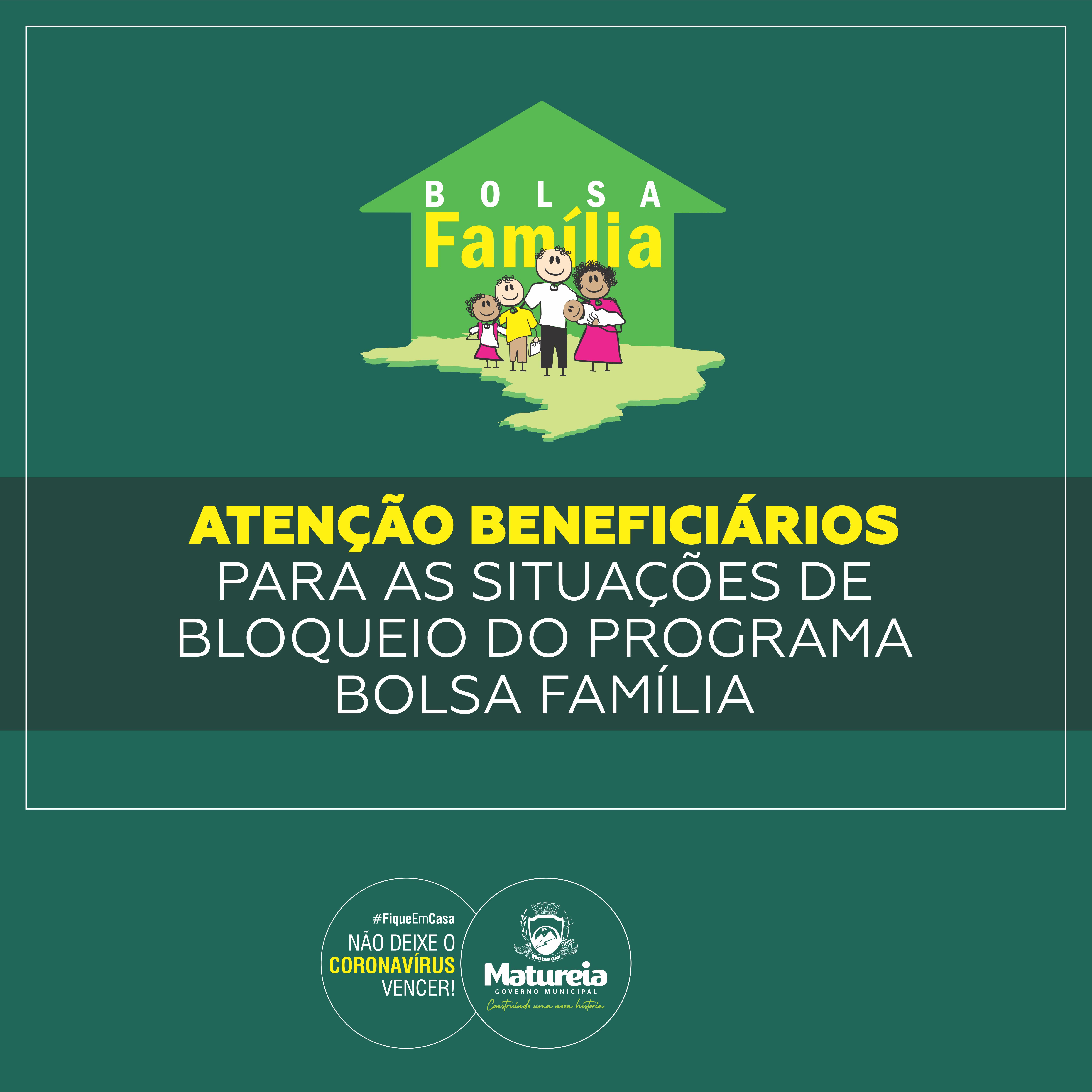 A Secretaria Municipal de Desenvolvimento Humano alerta os beneficiários do Programa Bolsa Família para as situações de bloqueio do benefício listadas pela Secretaria Nacional de Renda de Cidadania (SENARC), responsável por planejar, normalizar e coordenar a implementação das ações estratégicas da política nacional de renda de cidadania.