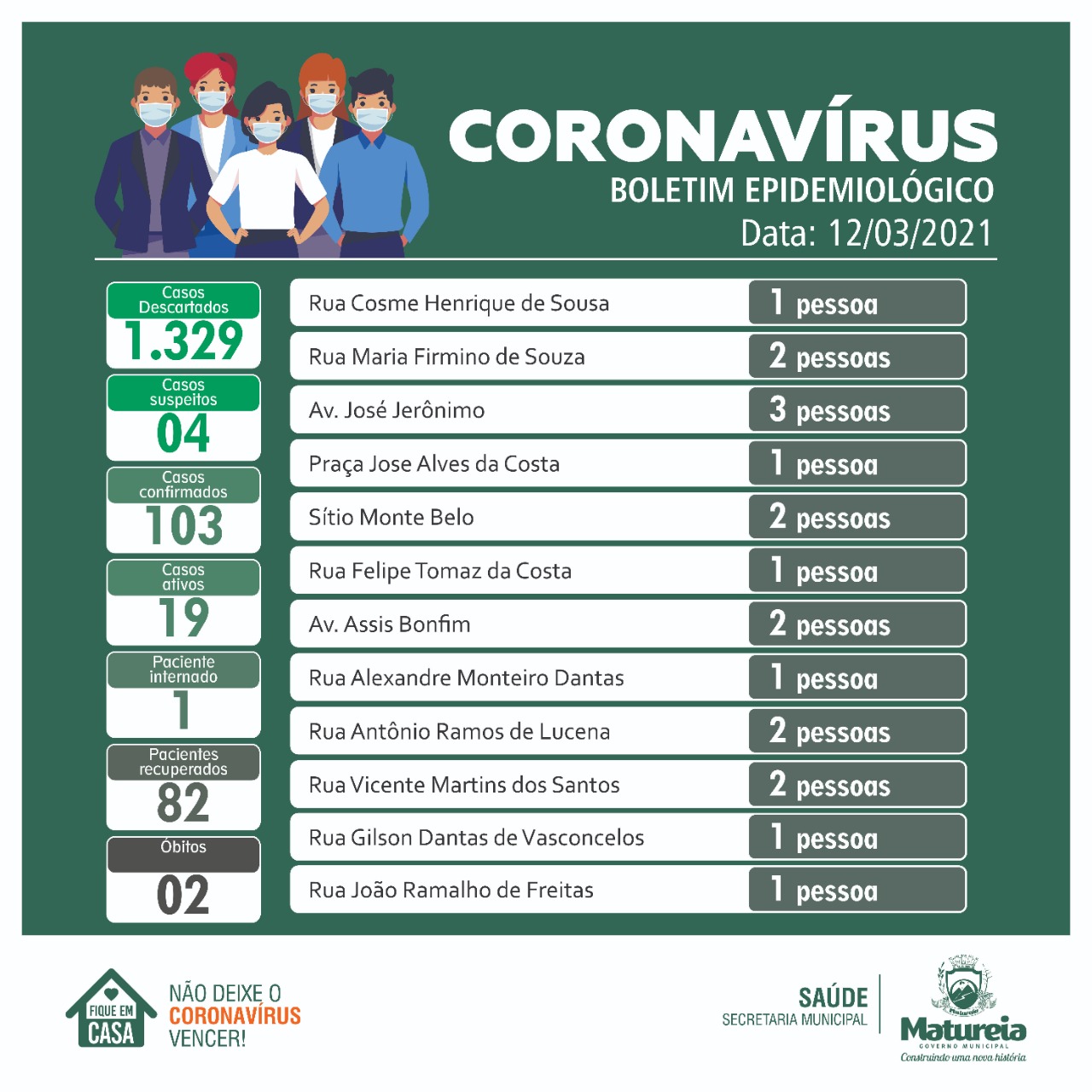 Covid-19: Boletim Epidemiológico 12/03/2021