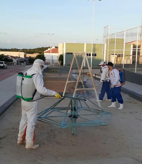 O trabalho de desinfecção se concentra nas áreas com estabelecimentos comerciais e órgão públicos que recebem maior movimento de pessoas durante o dia. O produto usado na limpeza é o desinfetante hospitalar que possui ação bactericida.