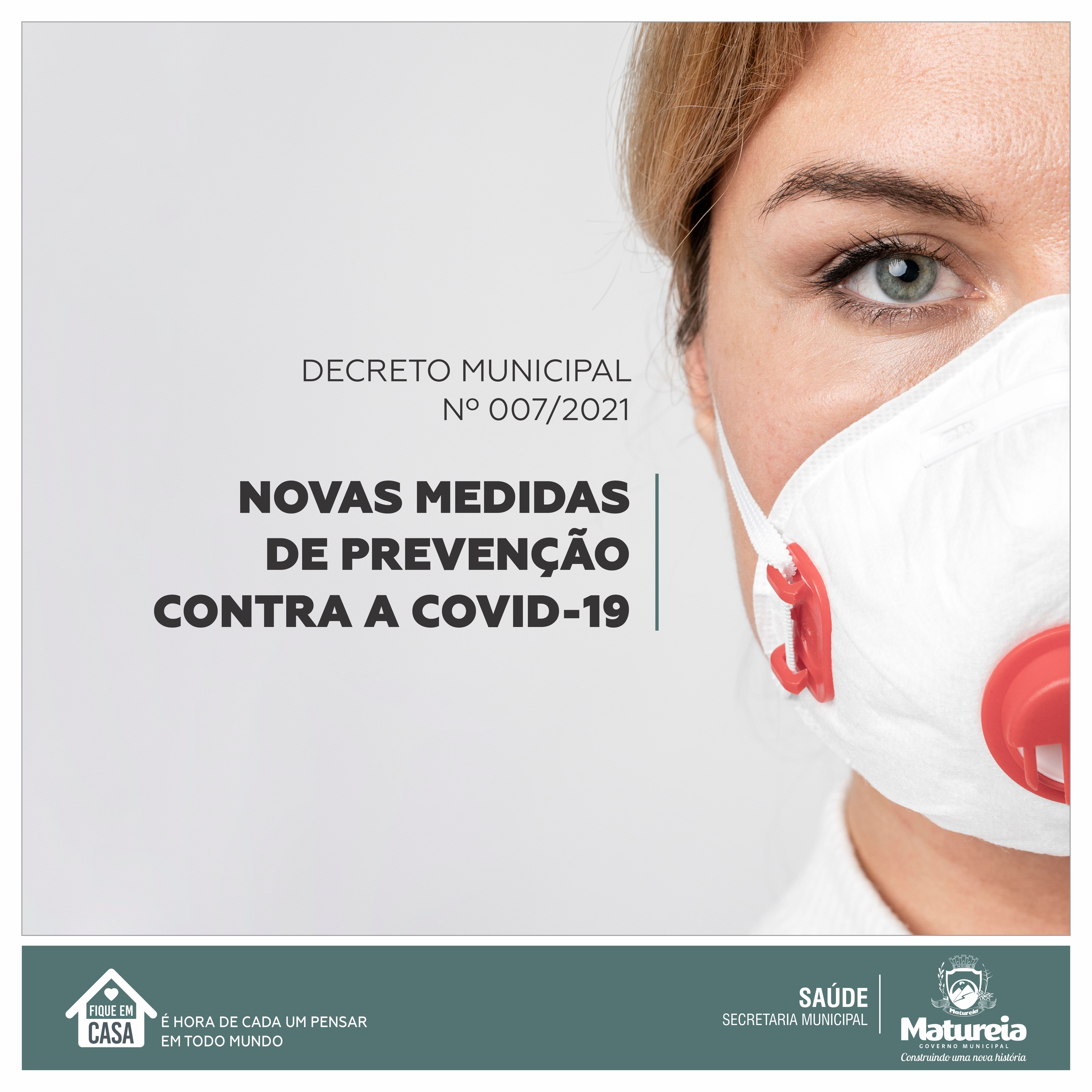 A Prefeitura Municipal de Matureia publicou nesta quarta-feira (24) o Decreto Municipal Nº 007/2021 que prevê novas medidas temporárias e emergenciais de prevenção de contágio pelo novo coronavírus (COVID-19), em razão do município está classificado com a bandeira laranja (Nível mobilidade restrita) de acordo com o Plano Novo Normal Paraíba, do Governo Estadual.