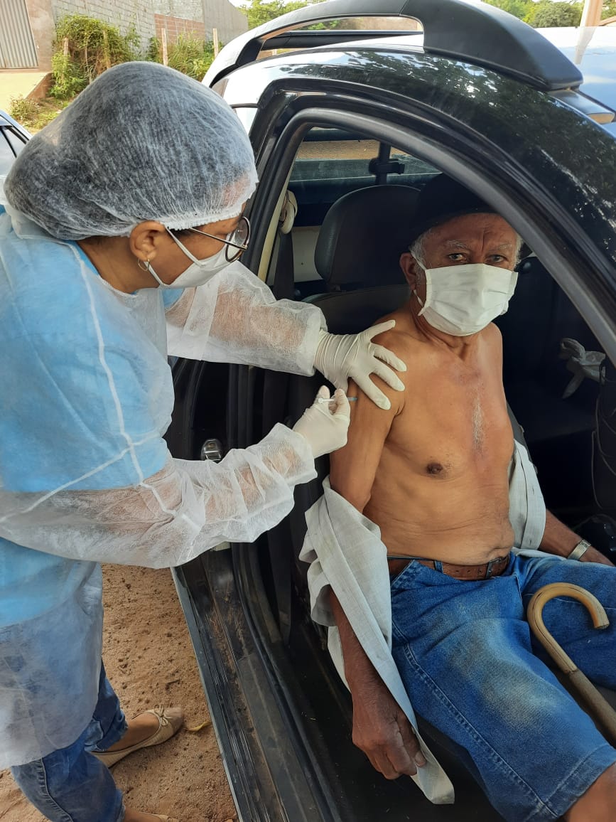 A vacinação no município está sendo realizada na área externa da Unidade Municipal de Saúde, na modalidade drive-thru e de forma convencional, além da vacinação a domicílio para idosos que possuem comorbidades e encontram-se acamados.