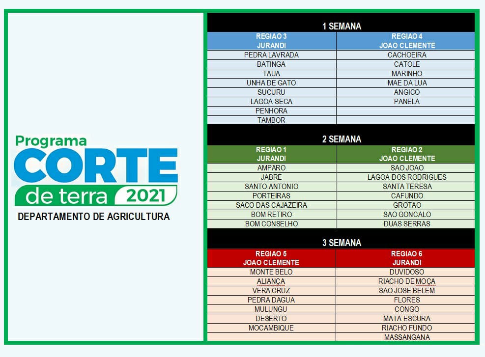 ?Por questão de sorteio ficou definido o início da aração de terra na região 3, na responsabilidade de Jurandir, Diretor de agricultura. Na próxima semana chega mais uma máquina para ficar à disposição das comunidades, onde Jurandir dará continuidade em uma região e João Clemente (Departamento de Agricultura) já iniciará na região 4?, explicou o Secretário de Desenvolvimento, Jackes Rodrigues.