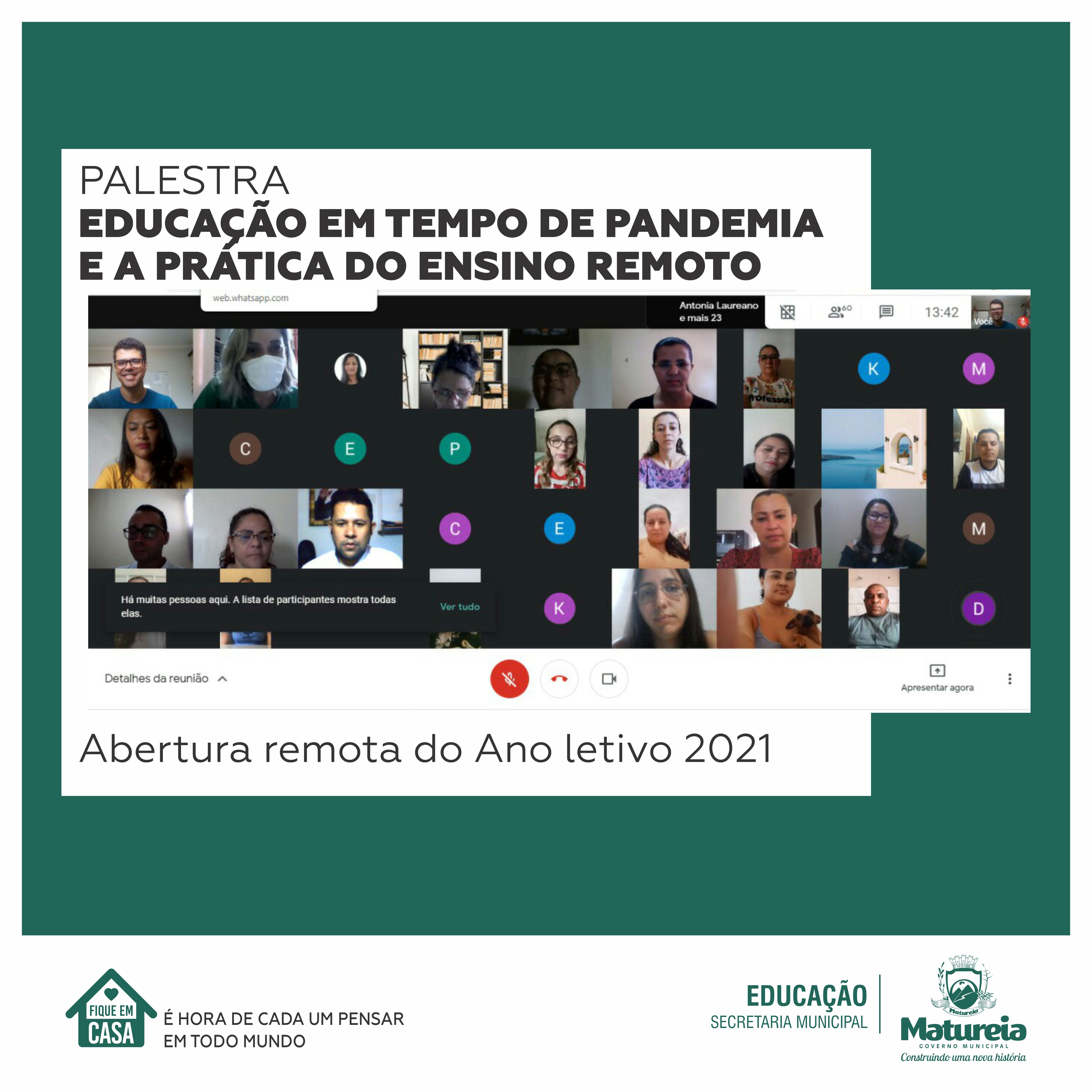 A Secretaria Municipal de Educação está promovendo uma programação inteiramente online para a abertura do Ano letivo 2021, com a participação dos profissionais da educação do município para dar início ao planejamento e às atividades de mais um ano de ensino.