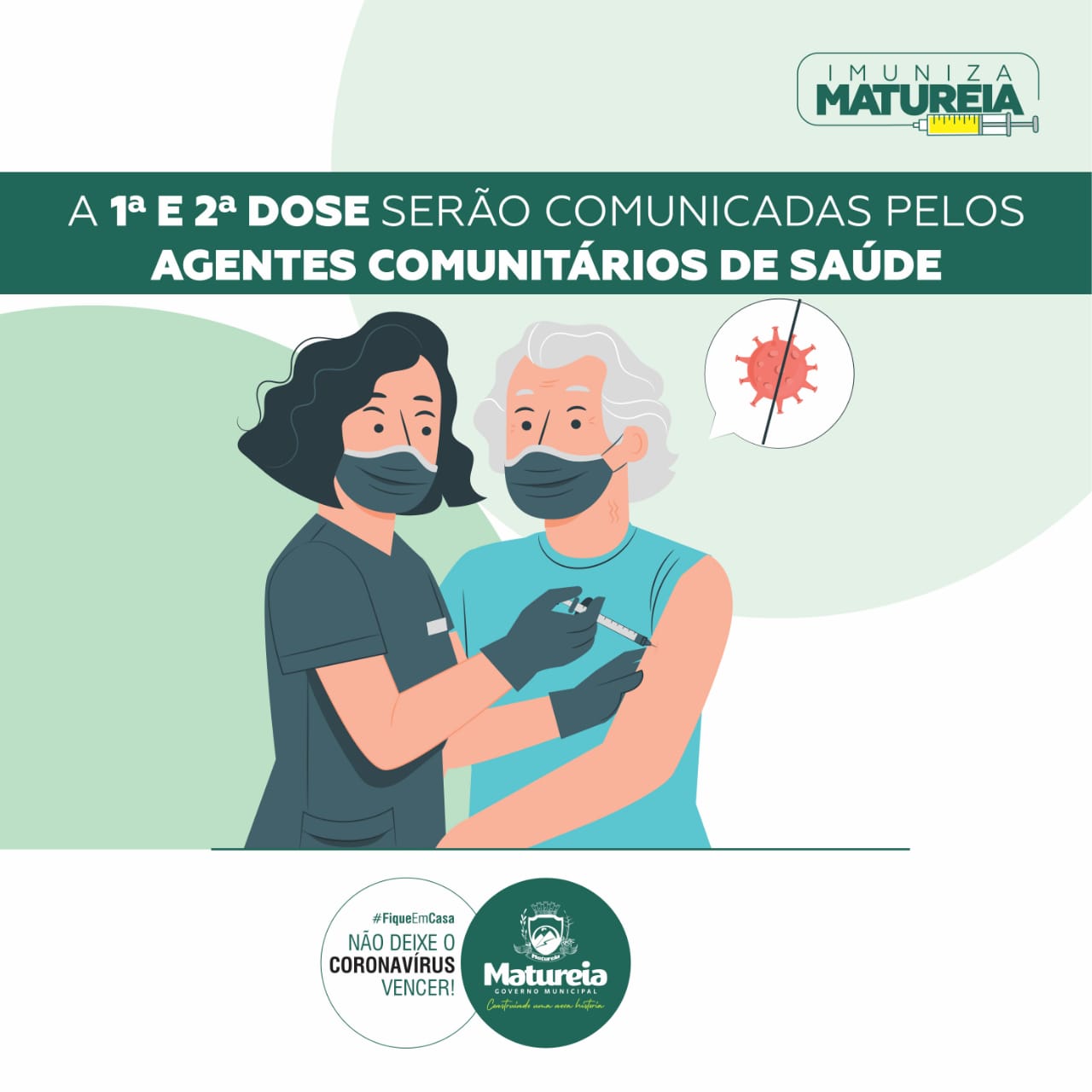 Os agentes comunitários de saúde irão comunicar aos públicos prioritários o dia de tomar a 1ª ou 2ª dose da vacina contra a covid-19. A campanha de vacinação no município está na 2ª fase do plano de imunização.
